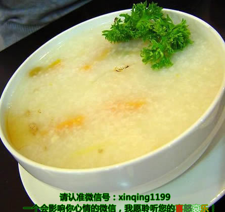 等到粥好了的时候先放鱿鱼丝,等一会儿,再放煸好的蒜末,香菜末,为了漂亮还可以放些葫萝卜丁,很细小的,那个味道非常香,对了,别忘了放盐和鸡精。